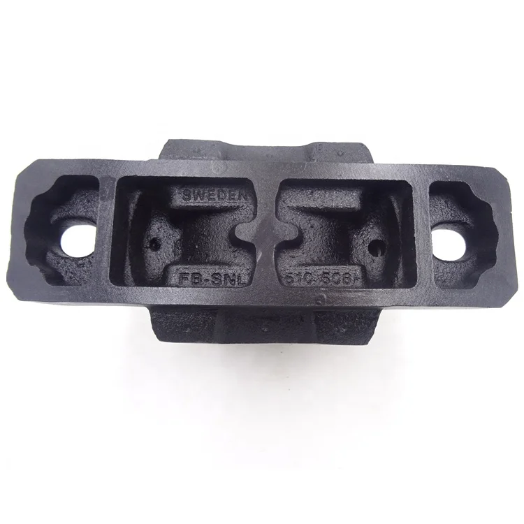 A pillow block (or plummer block) is a pedestal used to provide support for a rotating shaft with the help of compatible bearings & various accessories. Housing material for a pillow block is typically made of cast iron or cast steel. A pillow block usually refers to a housing with an included anti-friction bearing. A pillow block refers to any mounted bearing wherein the mounted shaft is in a parallel plane to the mounting surface, and perpendicular to the center line of the mounting holes, as contrasted with various types of flange blocks or flange units. A pillow block may contain a bearing with one of several types of rolling elements, including ball, cylindrical roller, spherical roller, tapered roller, or metallic or synthetic bushing. The type of rolling element defines the type of pillow block. These differ from "plummer blocks" which are bearing housings supplied without any bearings and are usually meant for higher load ratings and a separately installed bearing.