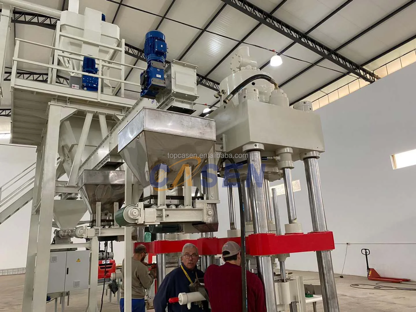 Composed of main hydrauliccylinder, material pushing hydraulic cylinder, bottom plate hydraulic cylinder,matching mould frame and mould, pressure head and so on.
