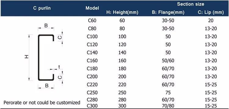 Section | c /z/u/omega channel for building materials or customized. | |