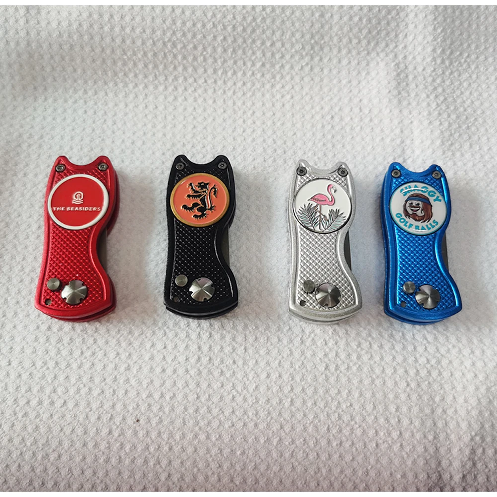 Custom Metal Golf Divot Tool FOR GOLF COURSE or CLUB MOQ: 100PCS Enamel YOUR OWN LOGO in full color High Quality Finish, High Polishing Front and Back. Free Artwork for Your Confirm before Ordering