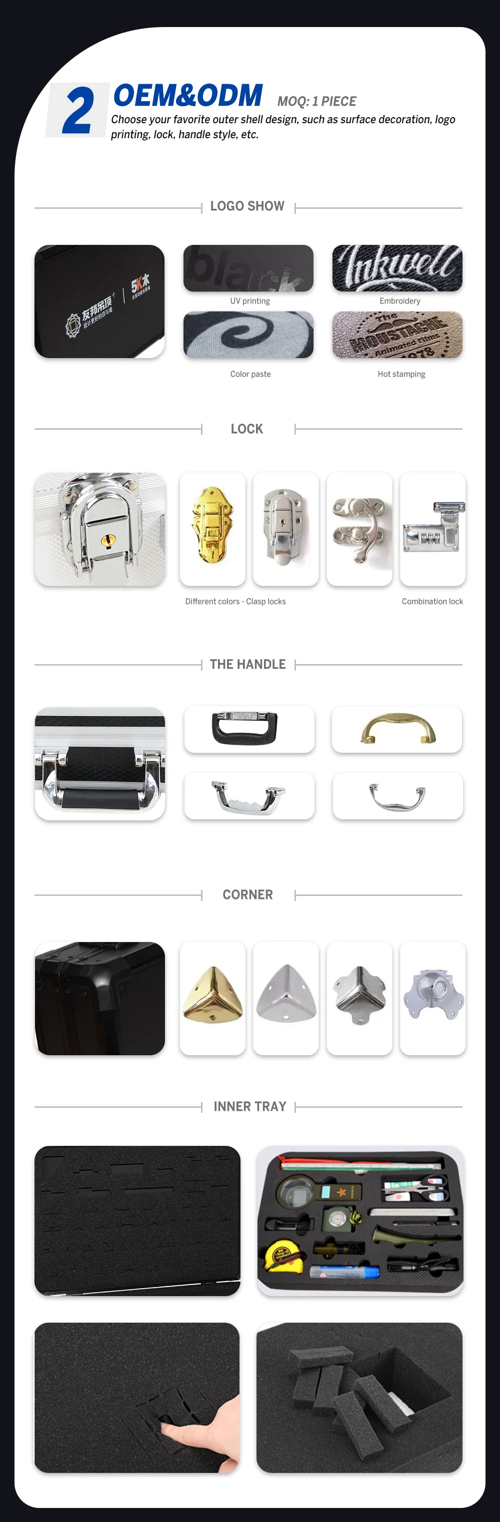 Material: | Aluminum +MDF/Plywood +ABS/Aluminum+Cloth/Foam/EVA | |||||||