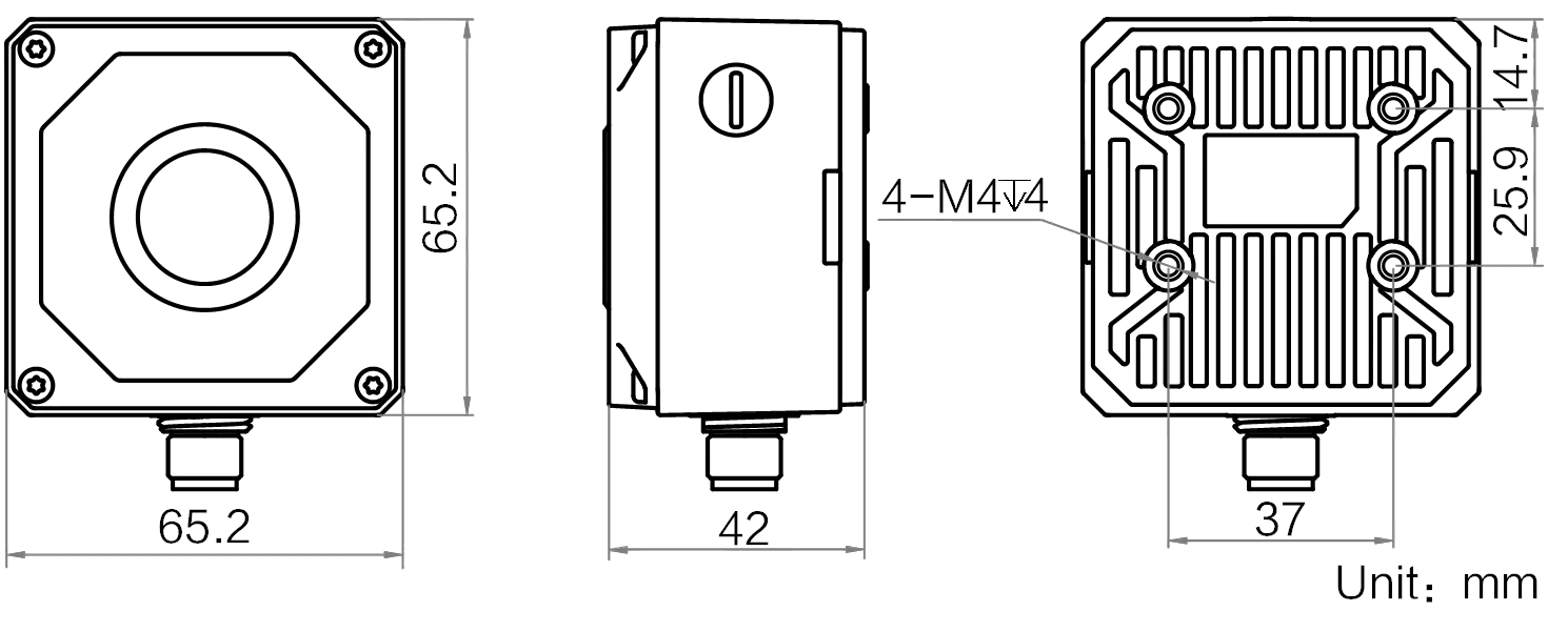 Electrical characteristics | Interface | 17-pin M12 interface provides power and I/O: 3 non-isolated inputs (LineIn 0/1/2), 3 non-isolated outputs (LineOut 0/1/2), 1 RS-232 input, 1 RS-232 output isolated outputs (LineOut 0/1/2), 1 RS-232 input, 1 RS-232 output Supports device triggering via top button | ||||