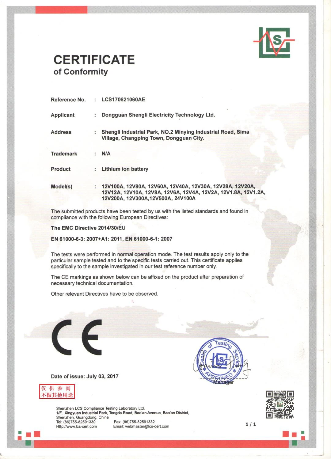 Operating Temperature | -20℃ ~ 60℃ |