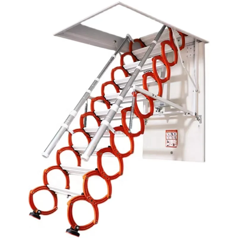 The Manufacturer Low price Steel wall mounted modern folding Retractable Loft Ladder is mainly used for the wall ,lofts, garage, platform, courtyard, mezzanine etc..