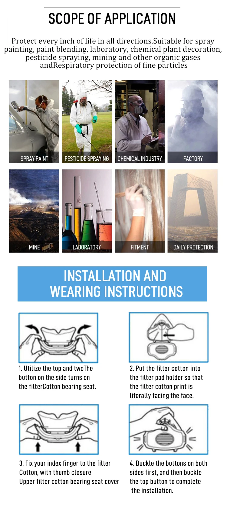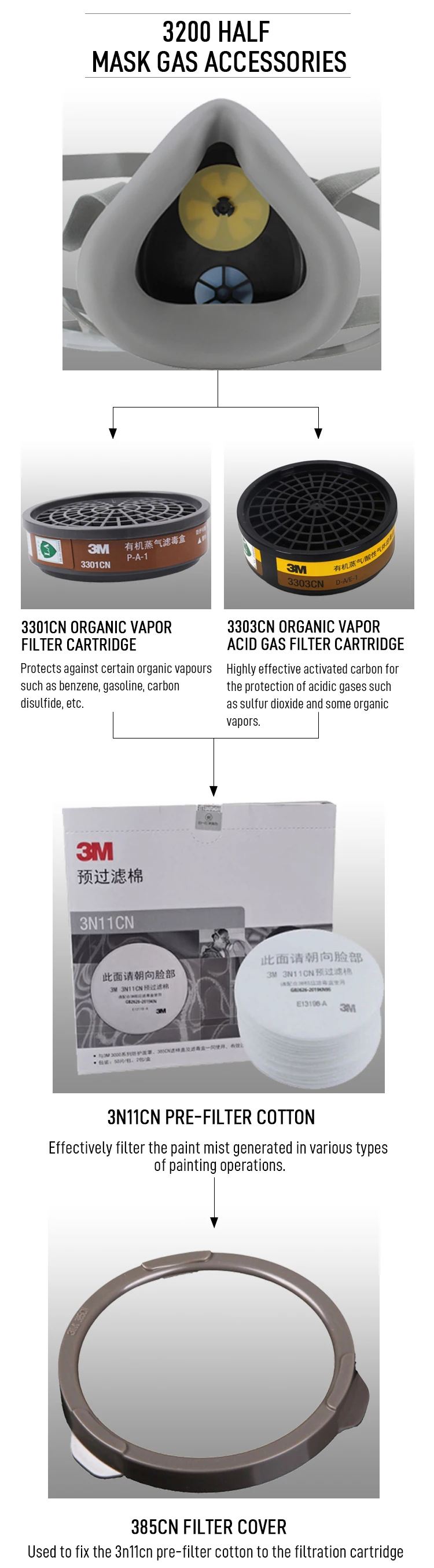 How to use | After matching with 3N11 pre-filter cotton and 385CN filter cotton cover, it can be used for painting protection |