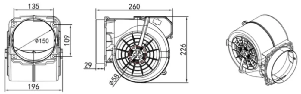 Product Name: 600m3/h Widely used plastic housing Kitchen hood centrifugal fan blower outlet diameter 150mm
