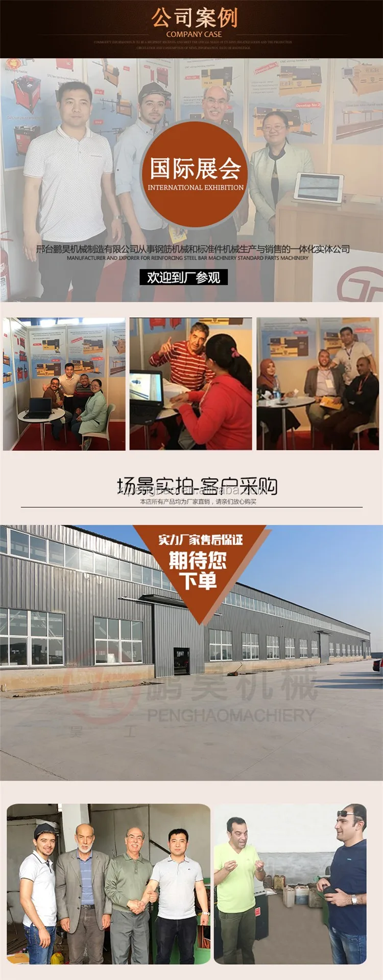 Xingtai Penghao Machinery manufactoring Co.,Ltd. was founded in 2010, specializing in the production of various CNC stirrup bending machine , steel bending machine,steel staightening&cutting machine ,thread rolling machine ,reducing diameter machine and other construction machinery .Our company is located in Xingwan town ,an industrial production base in Xingtai.