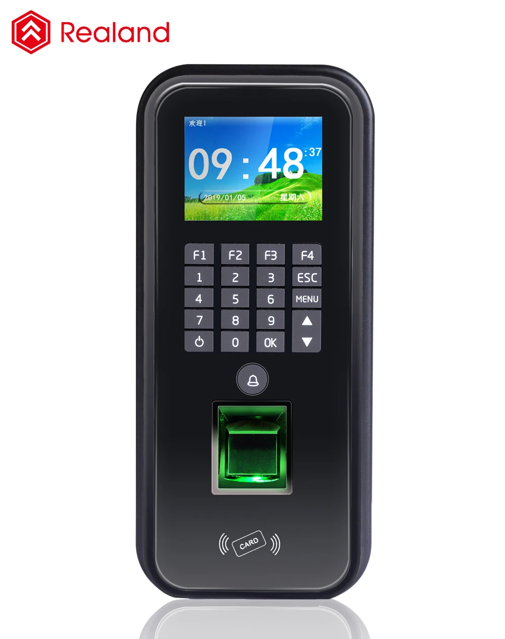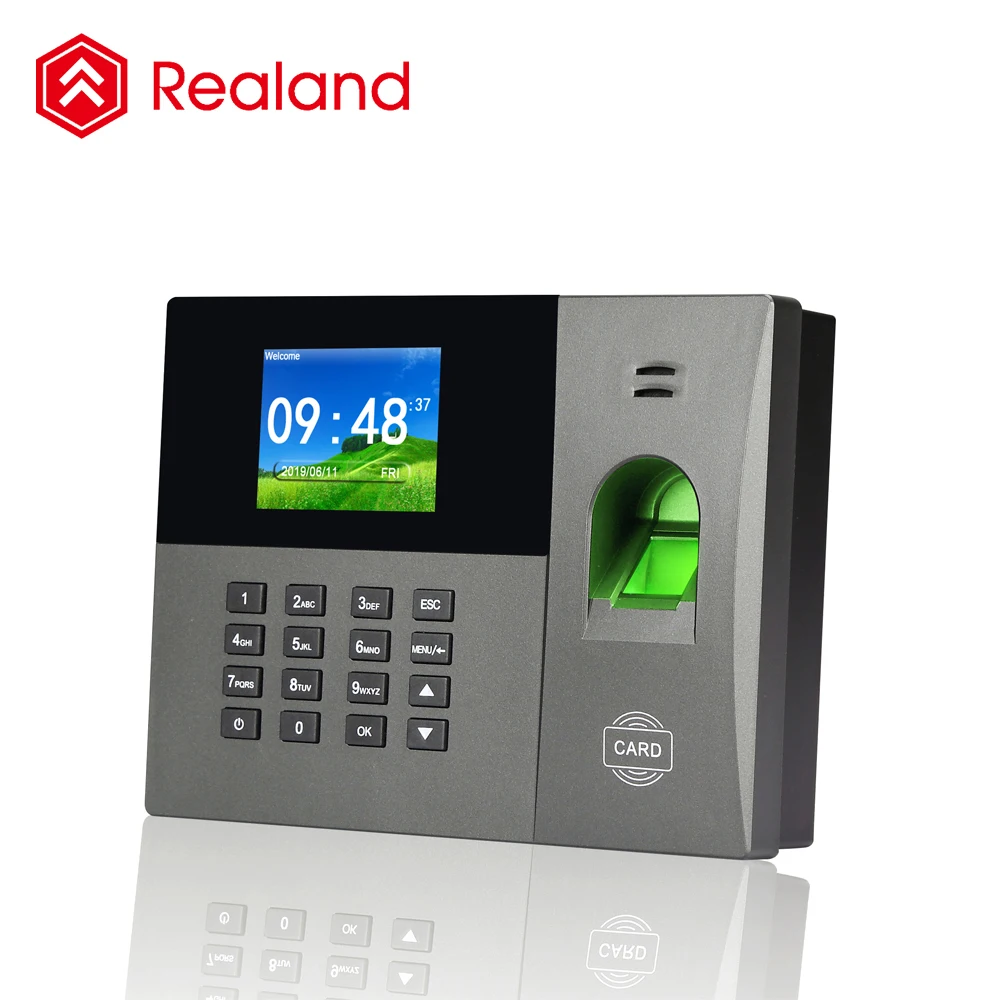 Realand Biometric Time Attendance A-L365 is an elegant biometric time attendance terminal designed to manage employee attendance and control door access. Fingerprints can be easily read no matter dry or wet, making the attendance process more convenient.