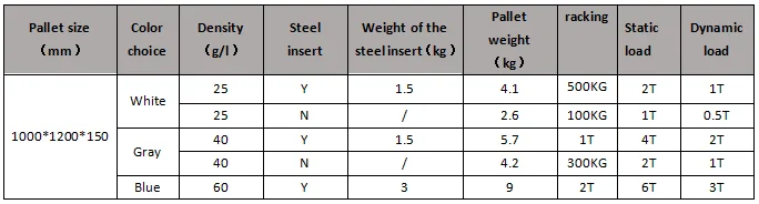 Strong load-bearing, static load 3-4t, dynamic load 2t, the cost is cheaper than ordinary plastic pallets, and the service life is longer.