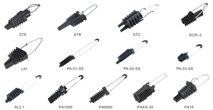 Body: Made of UV resistant glass fiber reinforced synthetic material Thermoplastic Body: High mechanical and climatic resistance Reduced dimensions: For easier hanging High strength: Grip not below 95% CUTS Service life: Does not damage the strand wire, could improves the vibration resistance Simple install: Fast installation requiring no tools