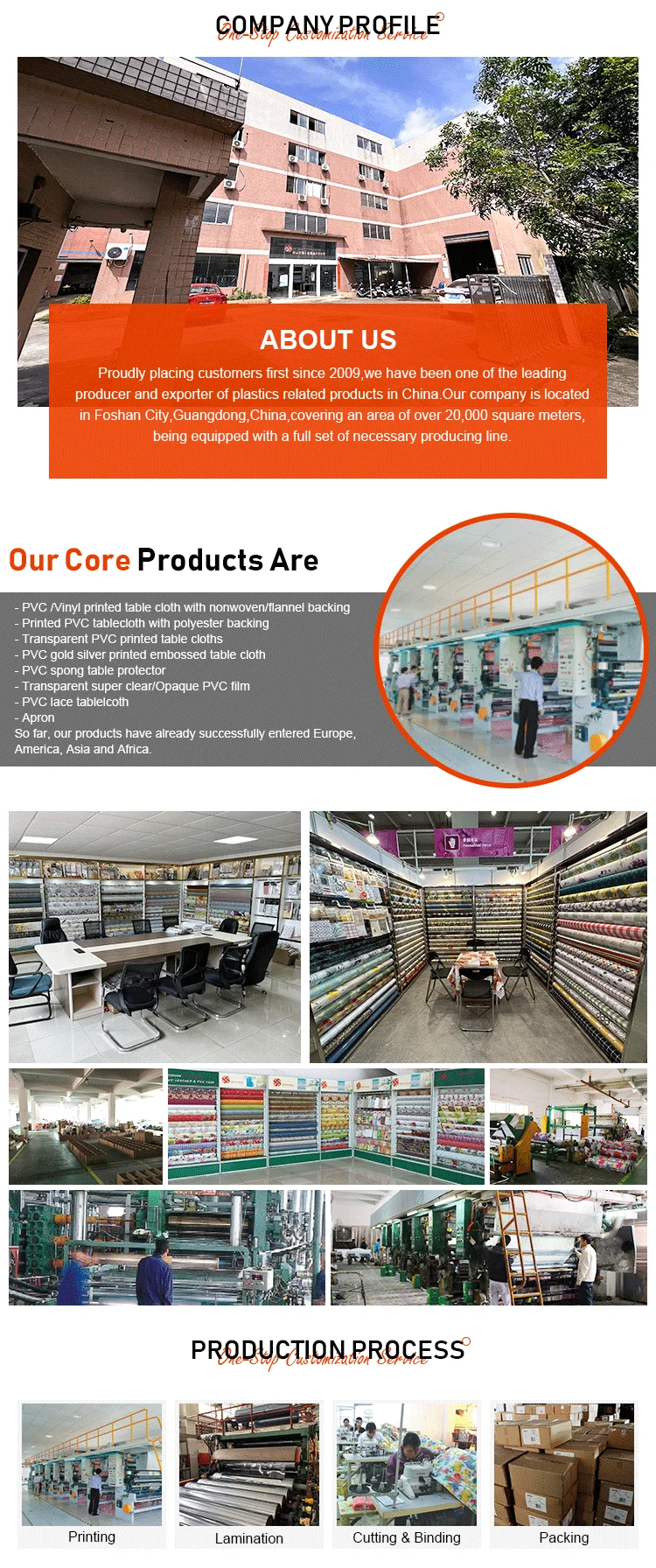 Packaging | 1) Rolls: with paper core inside & with PP/PVC film outside. 2) Ready-mades: each piece with insert card in one PE/PVC bag, many pcs in one carton. |