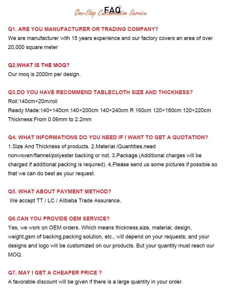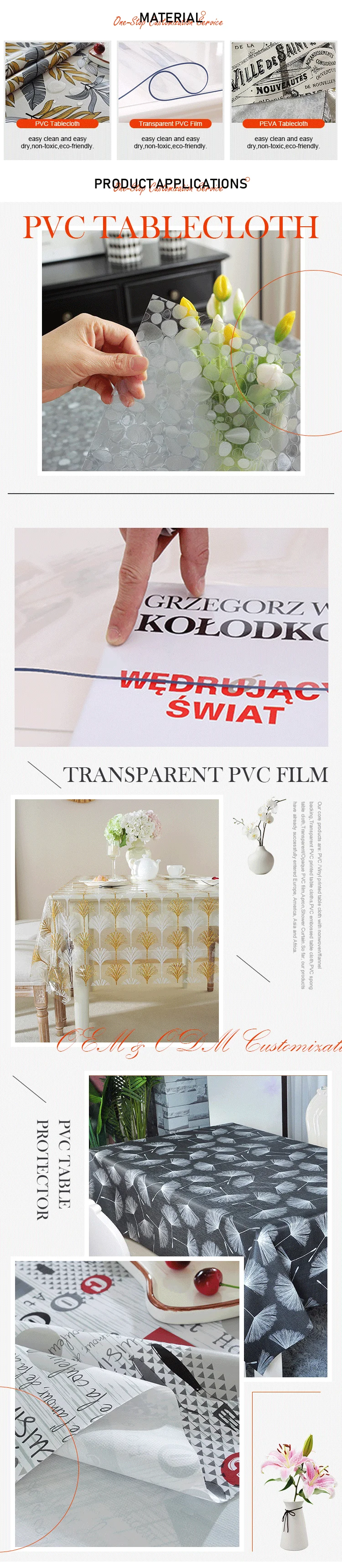 Advantage | Elegant decoration Water/oil proof for table indoor or outdoor Easy clean and easy dry Non-toxic Eco-friendly |