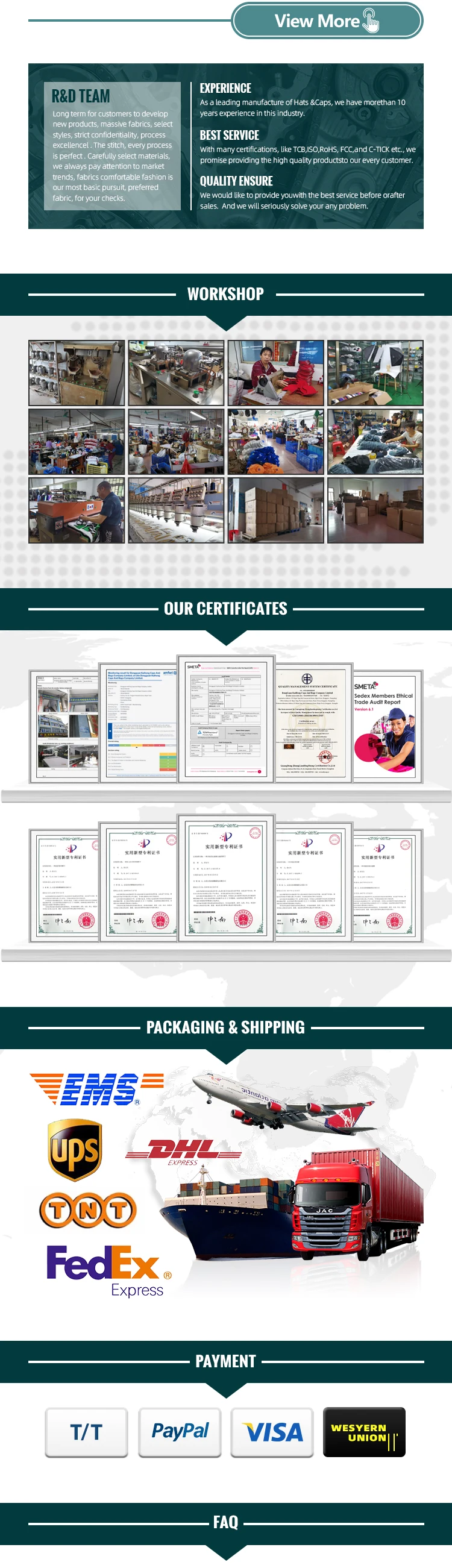 Back closure | metal buckle | Snapback Buckle (single breasted, double breasted), Metal Buckle, Strap Closure, Ladder Buckle. Any other closure clients request. | |