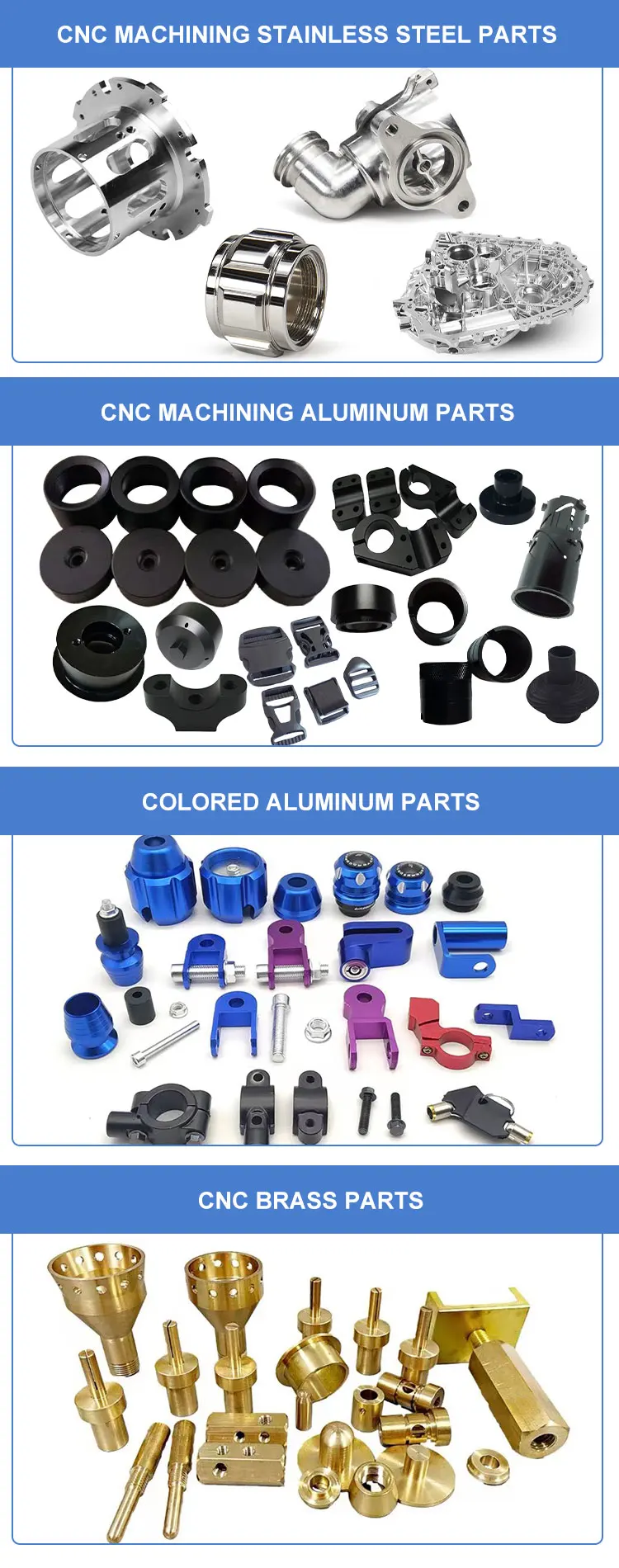 Materials | Aluminum, copper, brass, stainless steel, steel, iron, alloy, zinc etc. Other Special Materials:Lucite/Nylon/wood/titanium/etc |