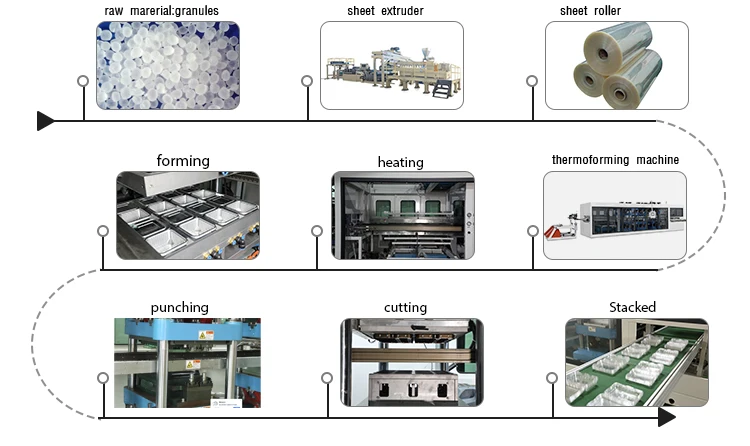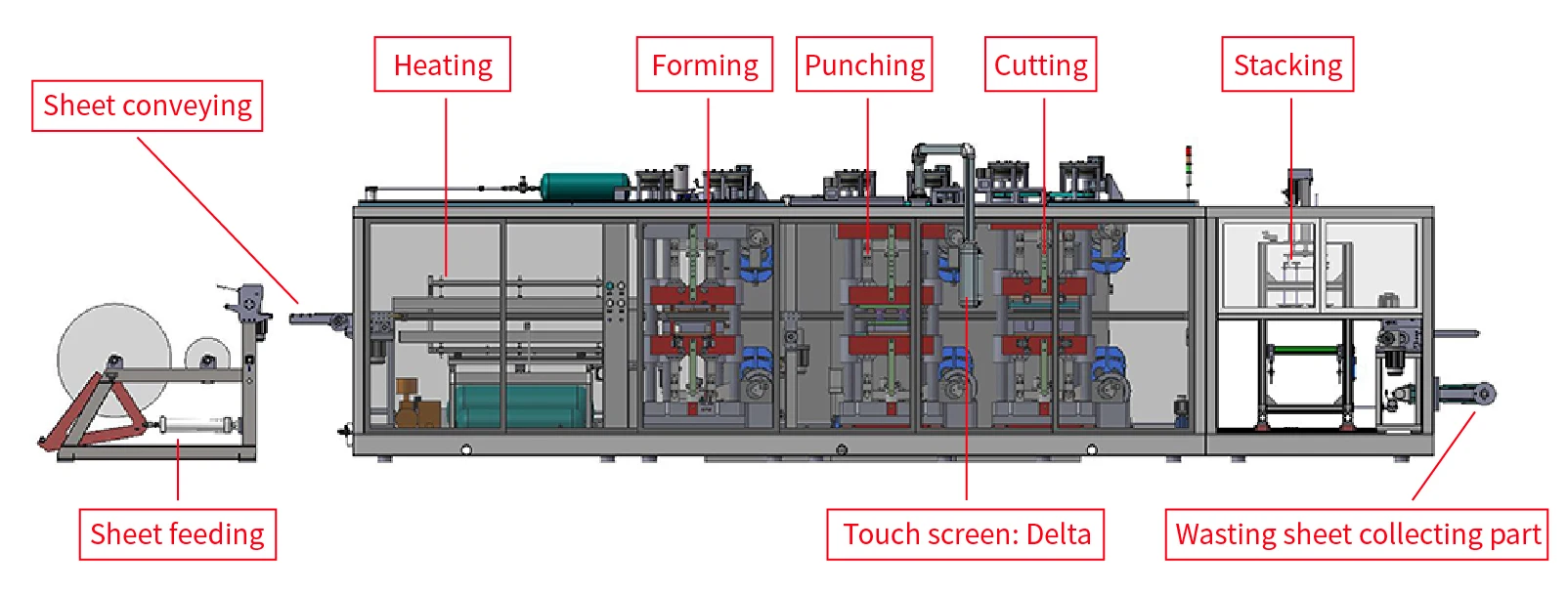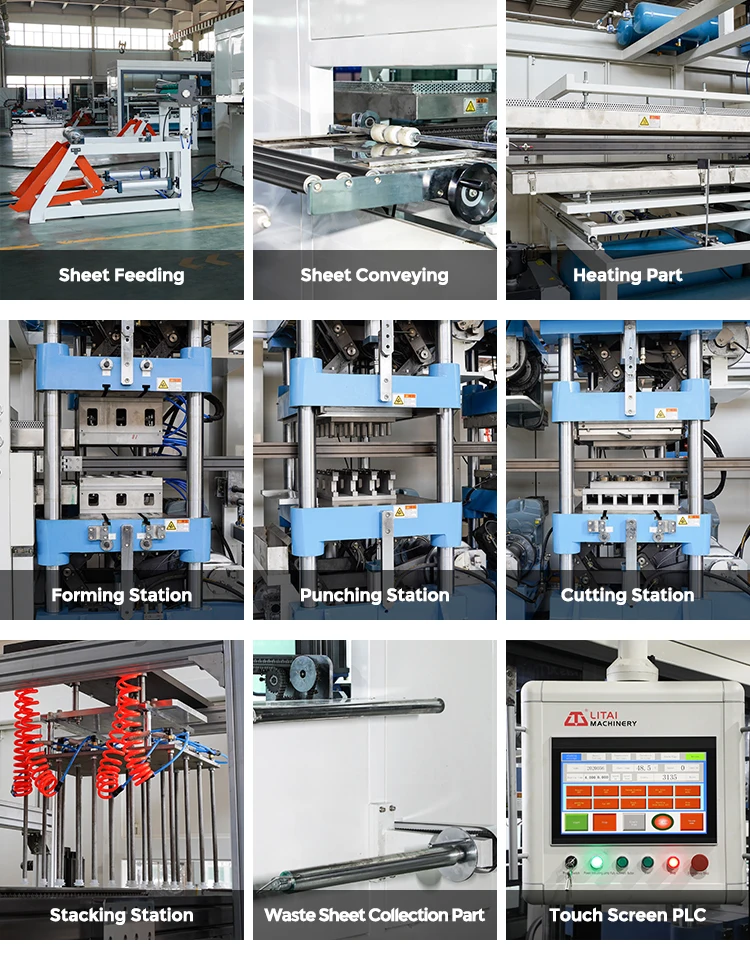 Procedure | Feeding-Heating- Forming-Punching-Cutting-Stacking-Recycle | Feeding-Heating- Forming-cutting-stacking-Recycle | ||||||