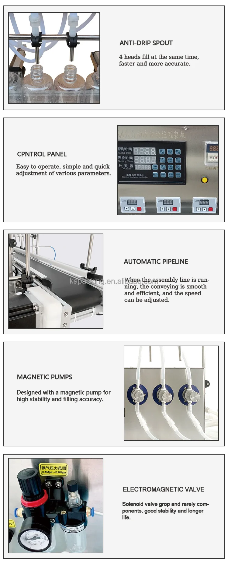 9. Microcomputer control, more stable filling, higher precision, small repeat error.