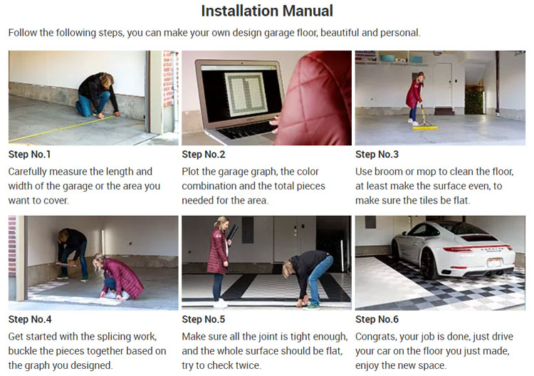 Installation is as EASY as snapping together adjacent shop tiles to form a beautiful and customizable shop flooring surface