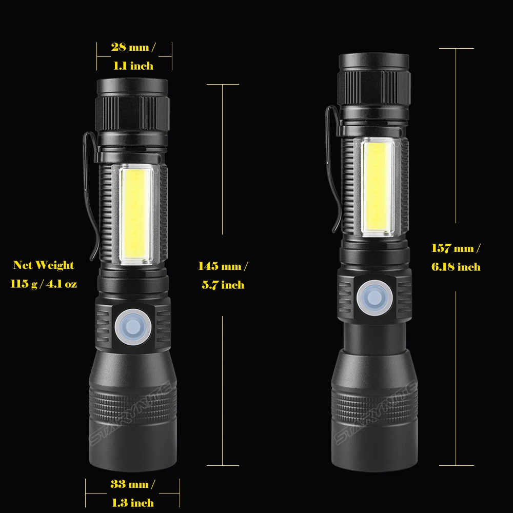 3 | Work Mode | White High; White Low; White SOS; UV Black Light; COB High; COB Red; COB White+Red Flash. | 16 | Product Material | Aluminum Alloy | |||||