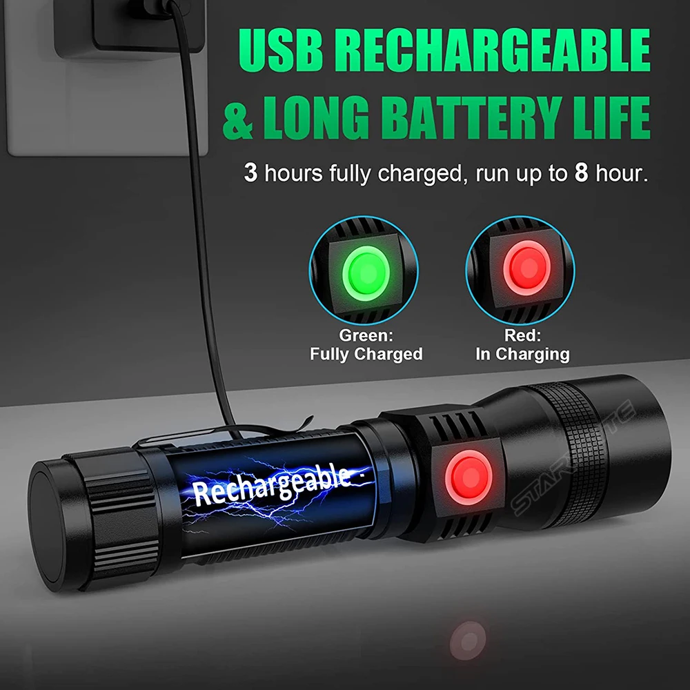 STARYNITE 2 LED HIGH POWER PORTABLE RECHARGEABLE ALUMINUM MAGNETIC UV LED VIOLET PURPLE FLASHLIGHT IN WHITE AND BLACK LIGHT