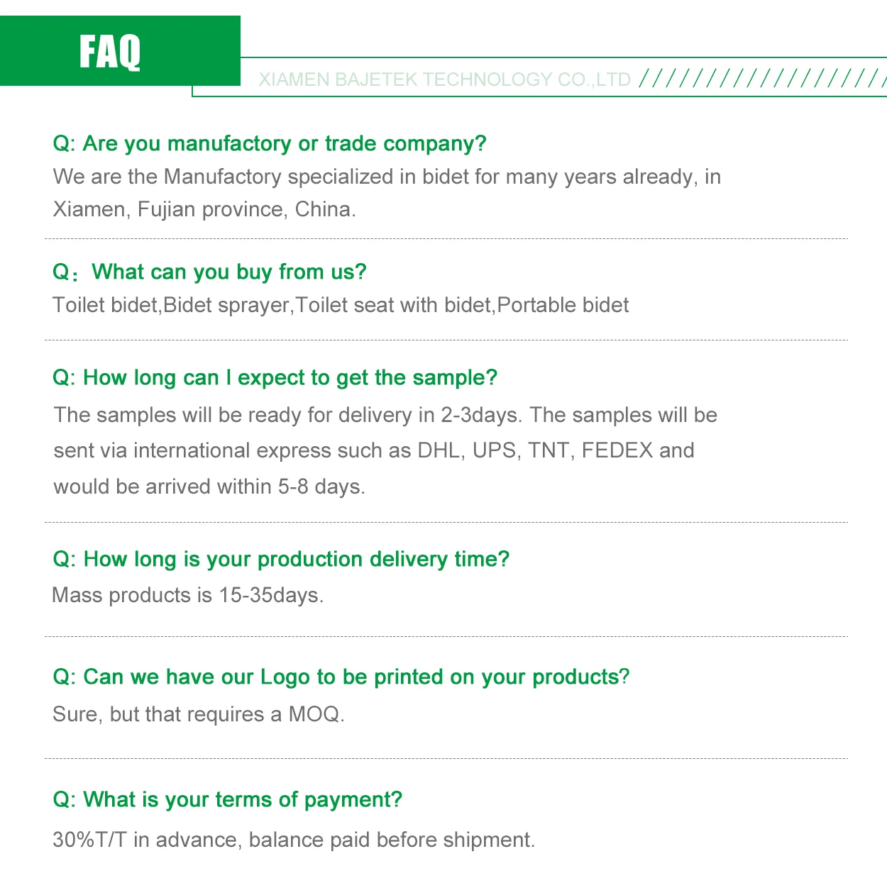 Lead time | 1.OEM:20~30 days for the first order,15-25 days for repeat orders 2.Inventory:5-10 days |