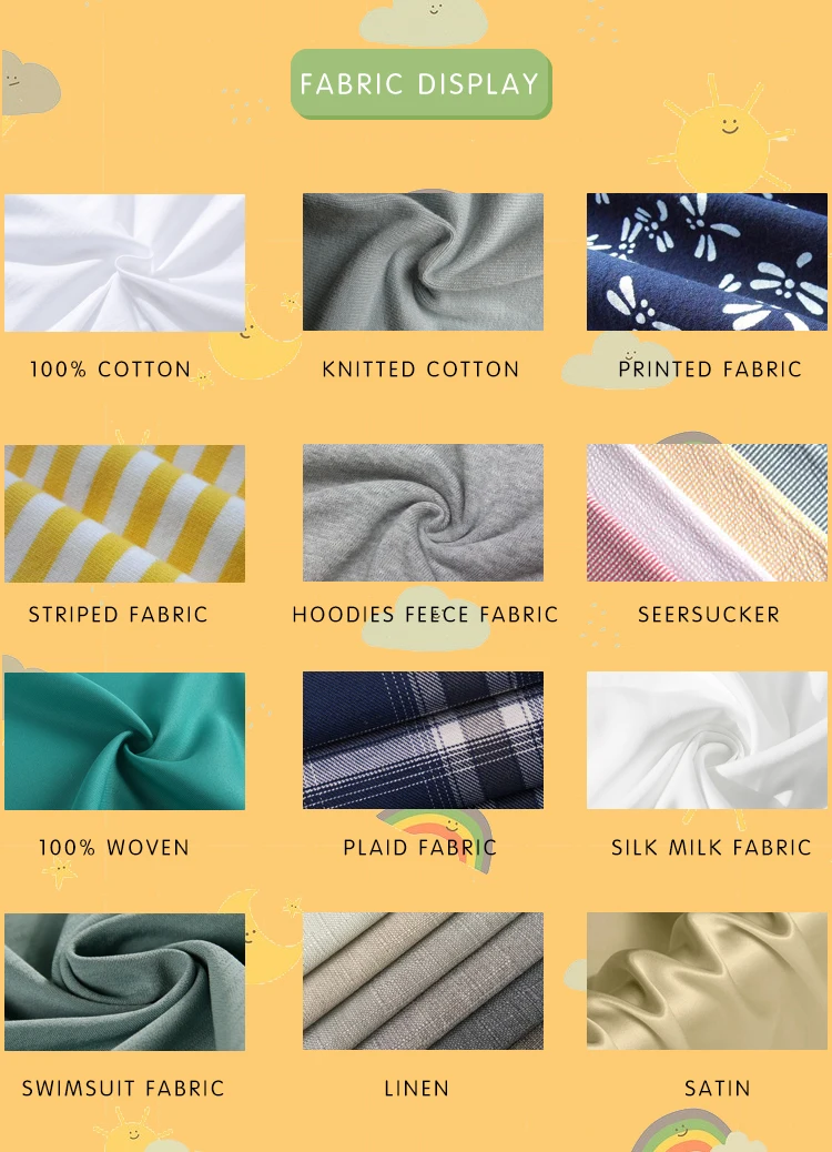 Fabric | 1. Cotton, Polyester, Spandex,Linen,Satin,ect ; 2. Other fabric composition as your requirement. | ||||||