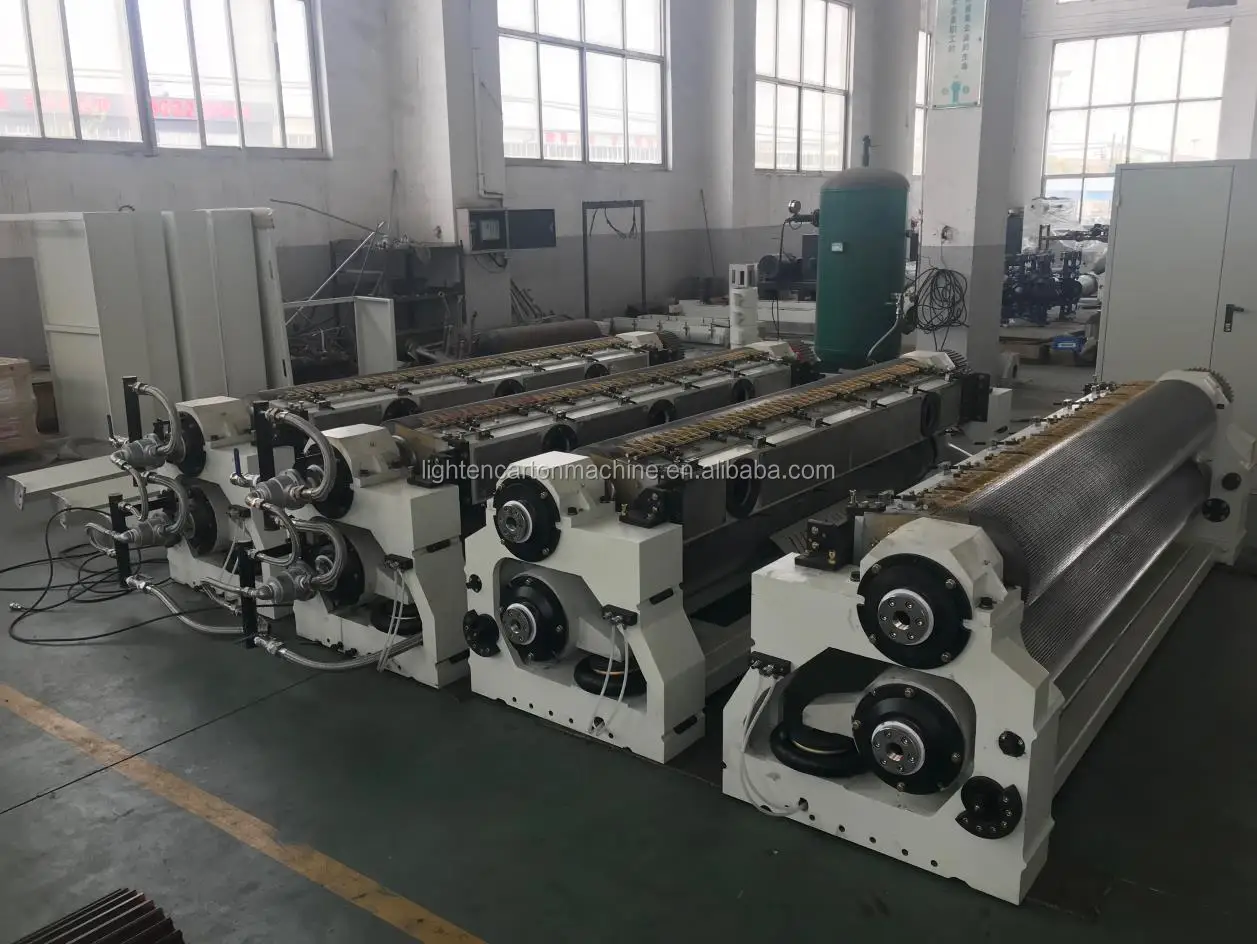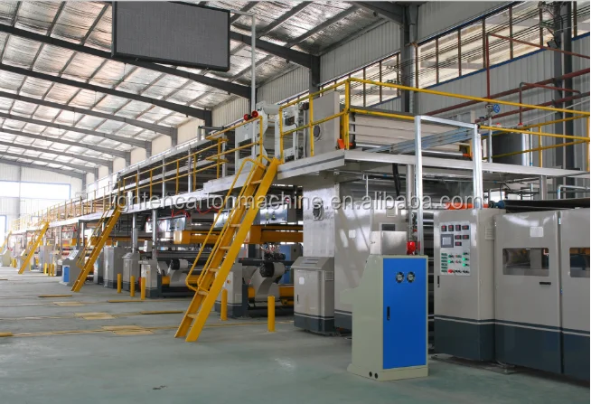 Corrugated paperboard production line includes mill roll stand,single facer,pre-heater jar,conveyor bridge,gluing machine,thin blade slitter scorer,NC cut off machine and auto-stacker,then produce high quality board,which can reach high speed and high performance. We can produce the 3ply,5ply and 7ply corrugated cardboard production line,