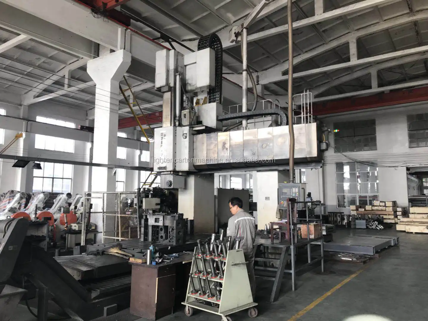 Spindle ¢ 240mm, hyperbolic heavy rocker, expand chuck , multi-point brake, hydraulic drive lifting, panning left and right on the middle.Guide rail length 6000mm,use of plate welding.