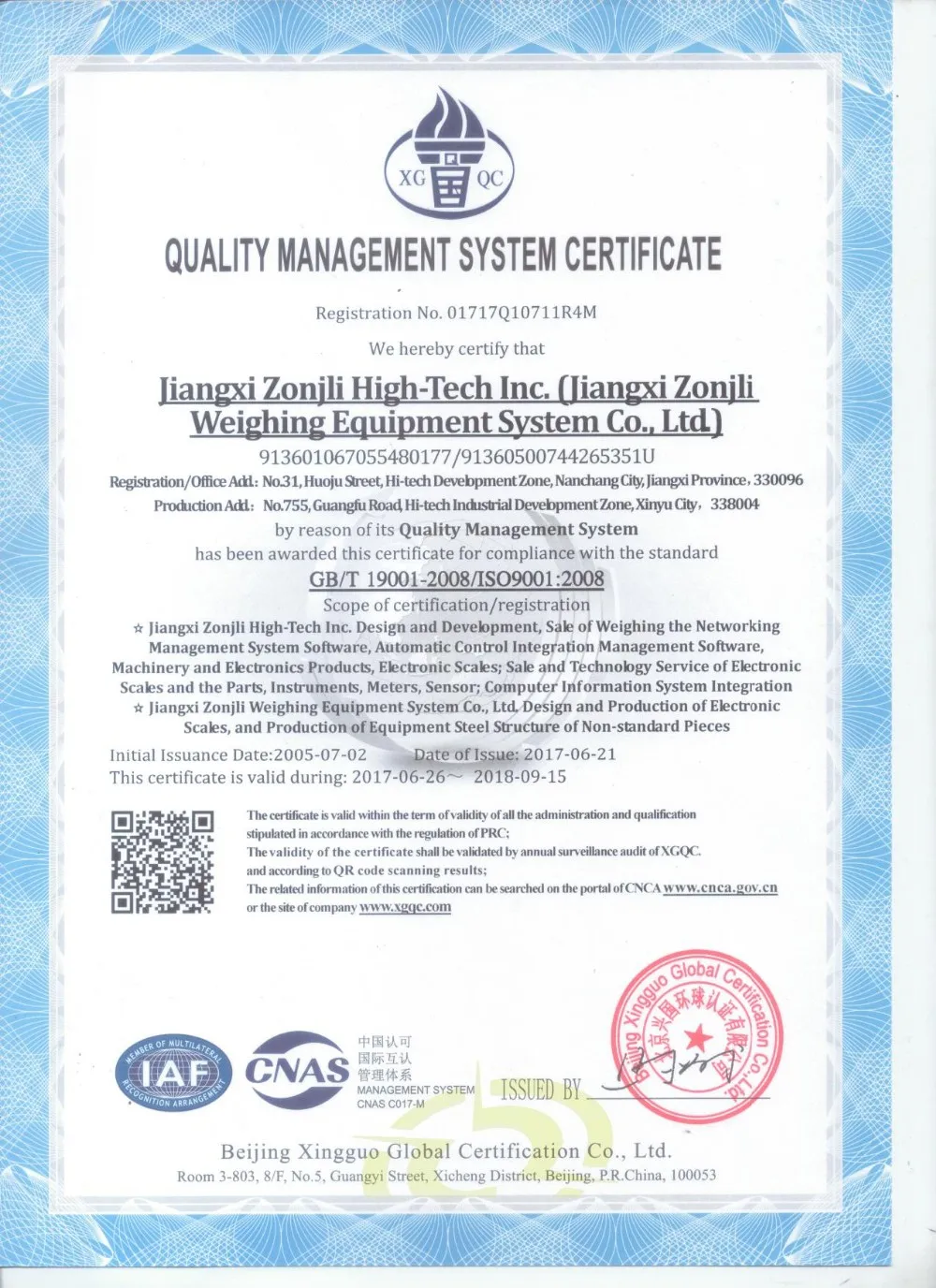 JIANGXI ZONJLI HIGH-TECH CO.,LTD. (ZONJLI for short) found in 1999 and located in Nanchang city of JIANGXI Province of China, which is a famous measuring high-tech enterprise. JIANGXI ZHONGJIALI SCALE& SYSTEM CO., LTD. is ZONJLI manufacturing base. ZONJLI main product is electronic weighing scale, among truck scale annual production capacity over 2000sets.Besides ZONJLI also provides relative products research and development, manufacture, sale and technical service, such as analysis testing instrument, indicator, electrical control, automatic system integration, network control and management software. All ZONJLI products are developed to meet the international standards and get certificates such as CE, ISO etc. At the same time ZONJLI gets the national key new product certificate and multinomial patents. Moreover, a part of products are supplied to military. ZONJLI becomes to vice president unit of China Weighing Instrument Association and member unit of China Weighing Instrument Standardization Technical Committee Secretariat.