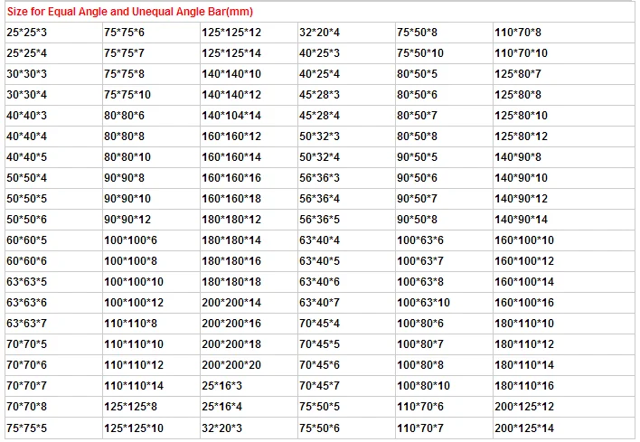 steel Angle Iron/ Hot Rolled Angle Steel/ Ms Angles Size