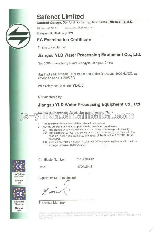 Jiangsu YLD Water Treatment Equipment Co., Ltd. is a high-tech enterprise, specialized in the research, development, design, manufacture, installation, technical consultation and personnel training. We mainly produce UV water sterilizer, automatic water softener, self-cleaning filter, industrial water filter, automatic backwash sand filter, activated carbon