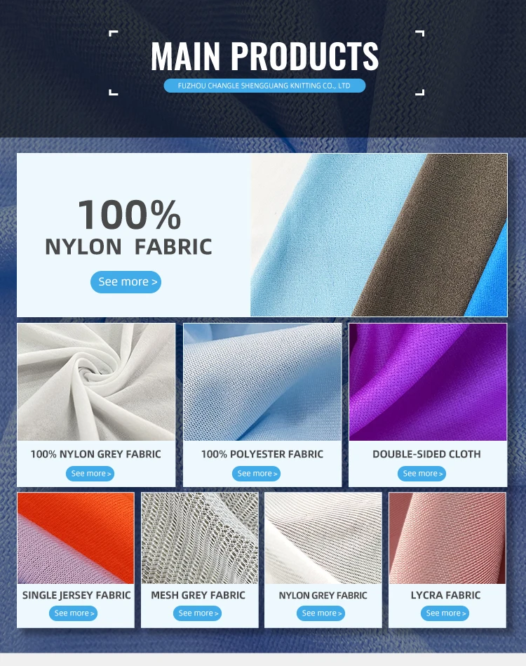 A:swimsuit fabric, underwear fabric, diving suit fabric, fabric for bag, computer bag and othe kinds of luggages, shoes material, polyester spandex fabric, nylon spandex fabric, 100%polyester fabric, 100% nylon fabric, polyester leica fabric, brocade leica fabric, and other knitted fabrics