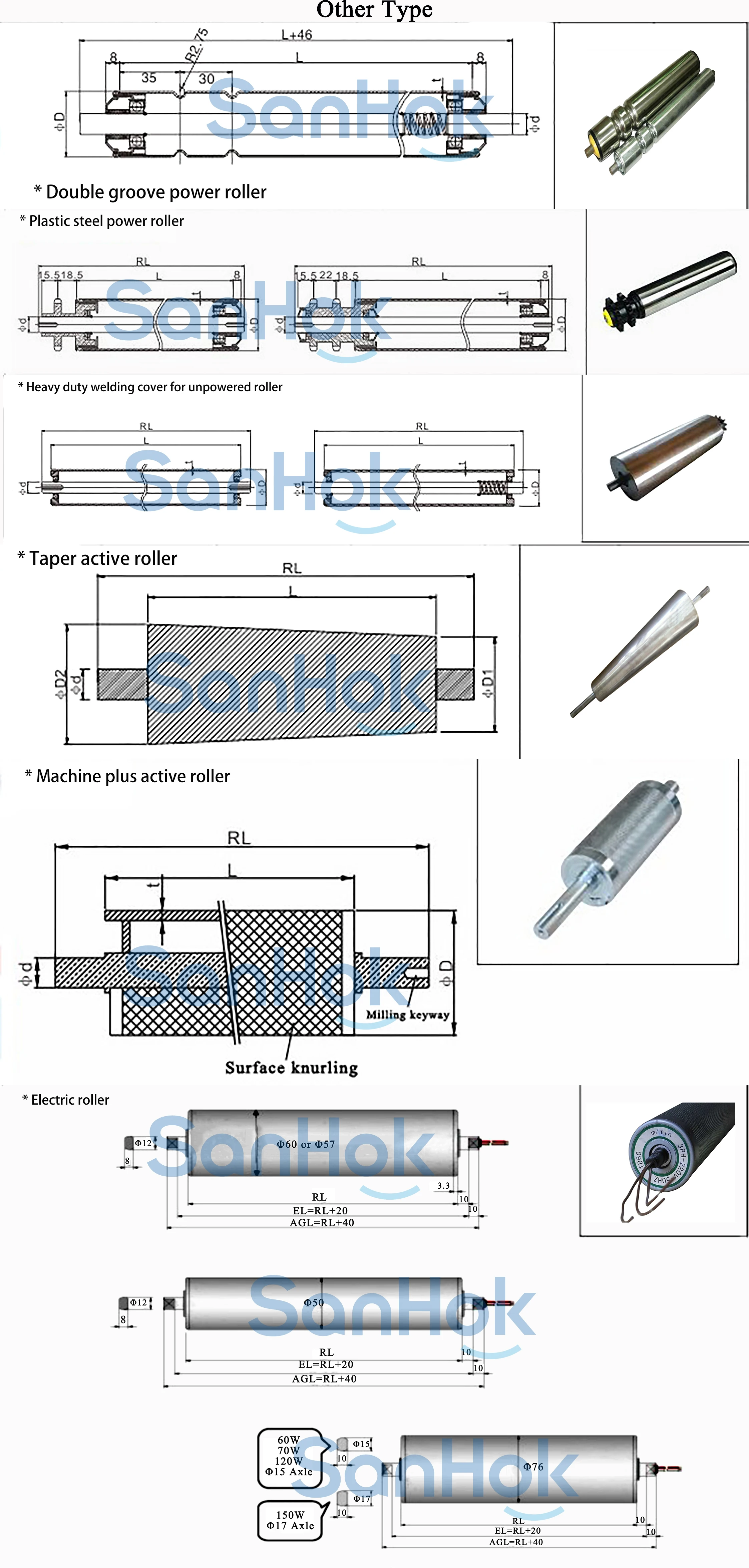 Roller Length (L) | Roller Diameter Φ (D) | Shaft Diameter Φ (D) | Roller Thickness (T) | Bearing | |||