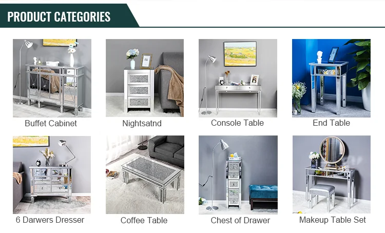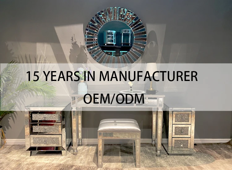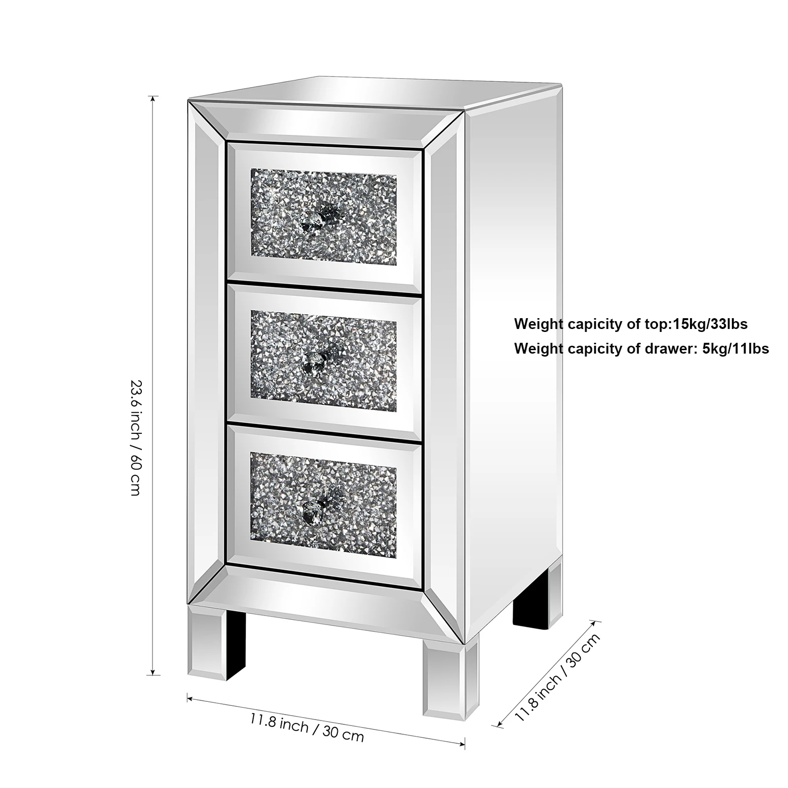 Bedroom Mirrored Furniture Contemporary Mirrored Nightstand with 3 Crystal Diamond Drawers for Bedroom Mirrored Bedside Table