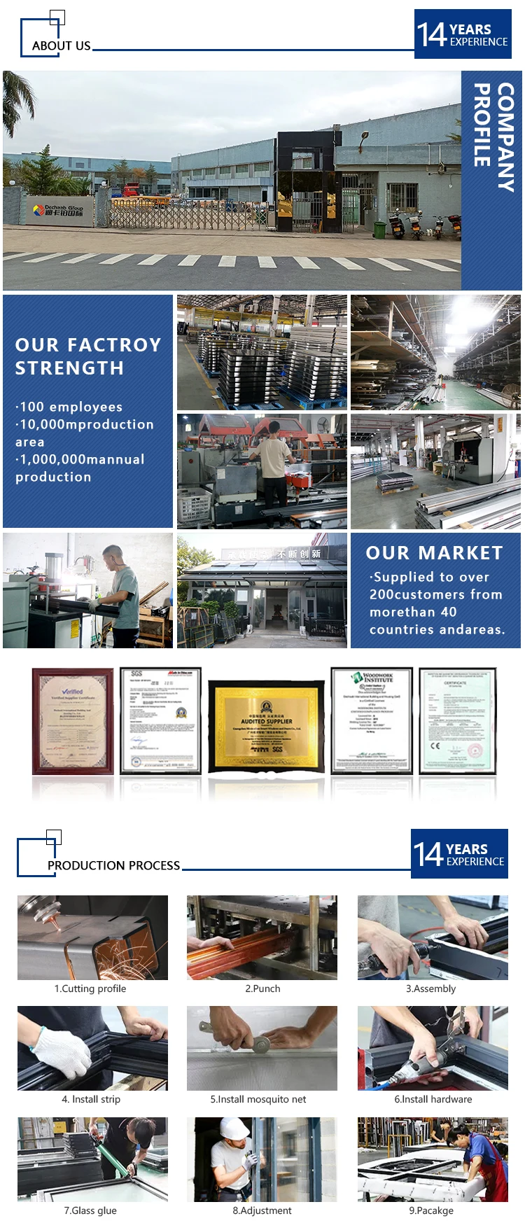 Glass option | A. Single glass: 5,6,7,8,10,12,15,19mm Tempered Glass B. Double glazing: 5+ 6/9/12 +5mm Tempered Glass C. Laminated glass: 5+ 0.38/0.76/1.52PVB+5mm Tempered Glass D. Tinted/Reflect Glass/Tempered Glass E: Customized |