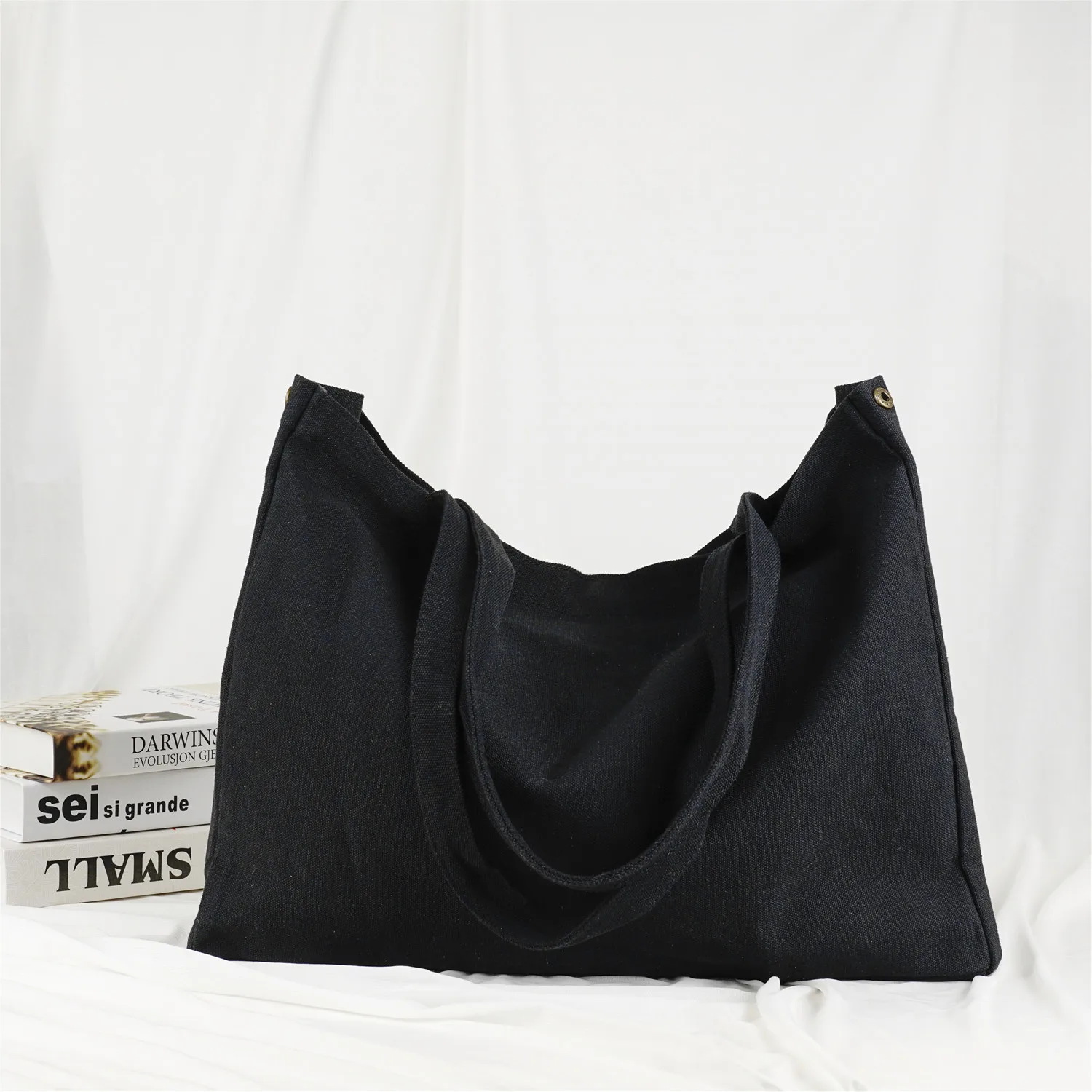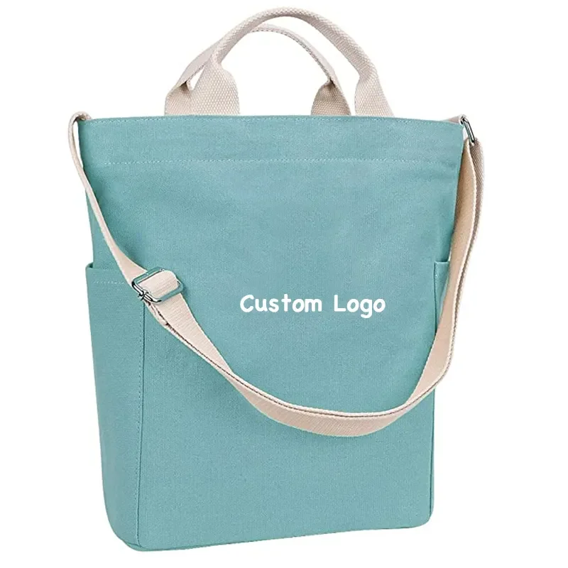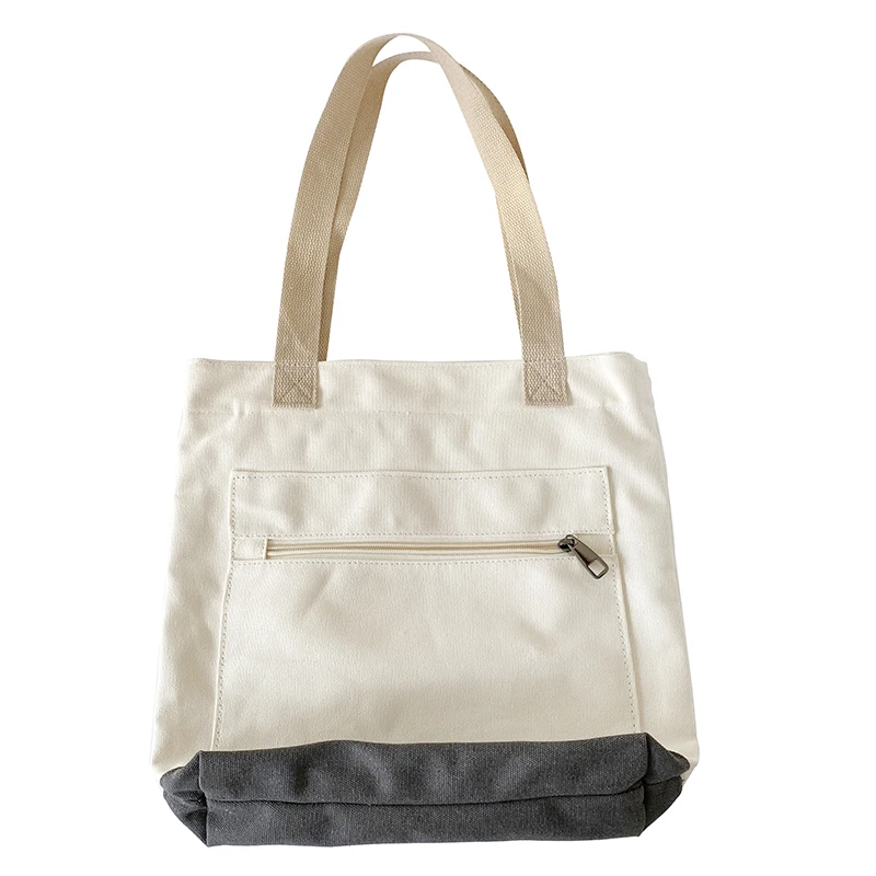 Products Name | Custom Design Two-Tone Reinforced Handle Canvas Tote Shopper Bags With Zipper And Pockets | |||||||