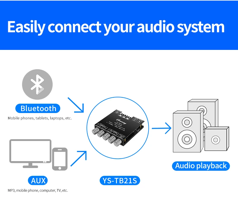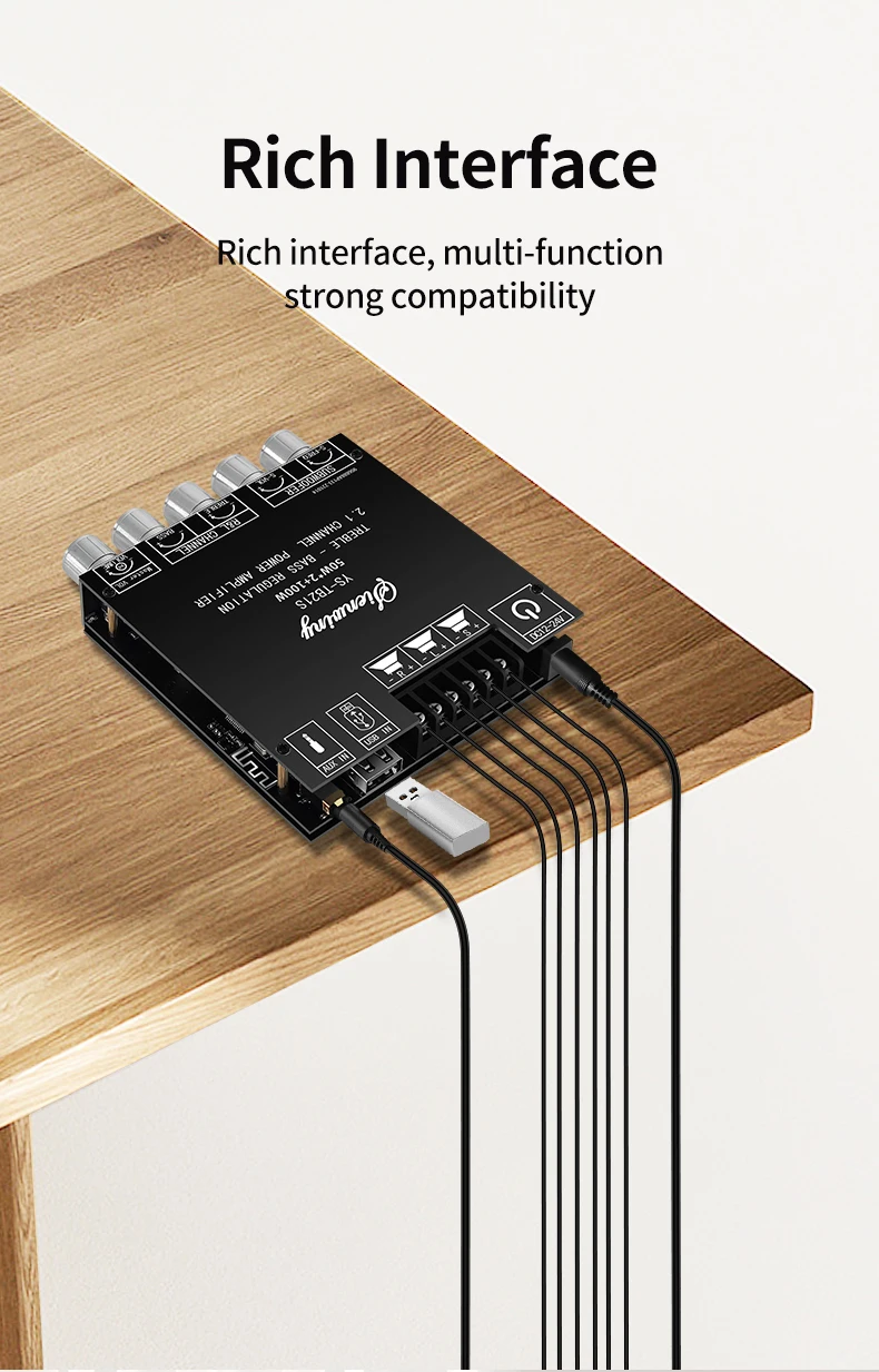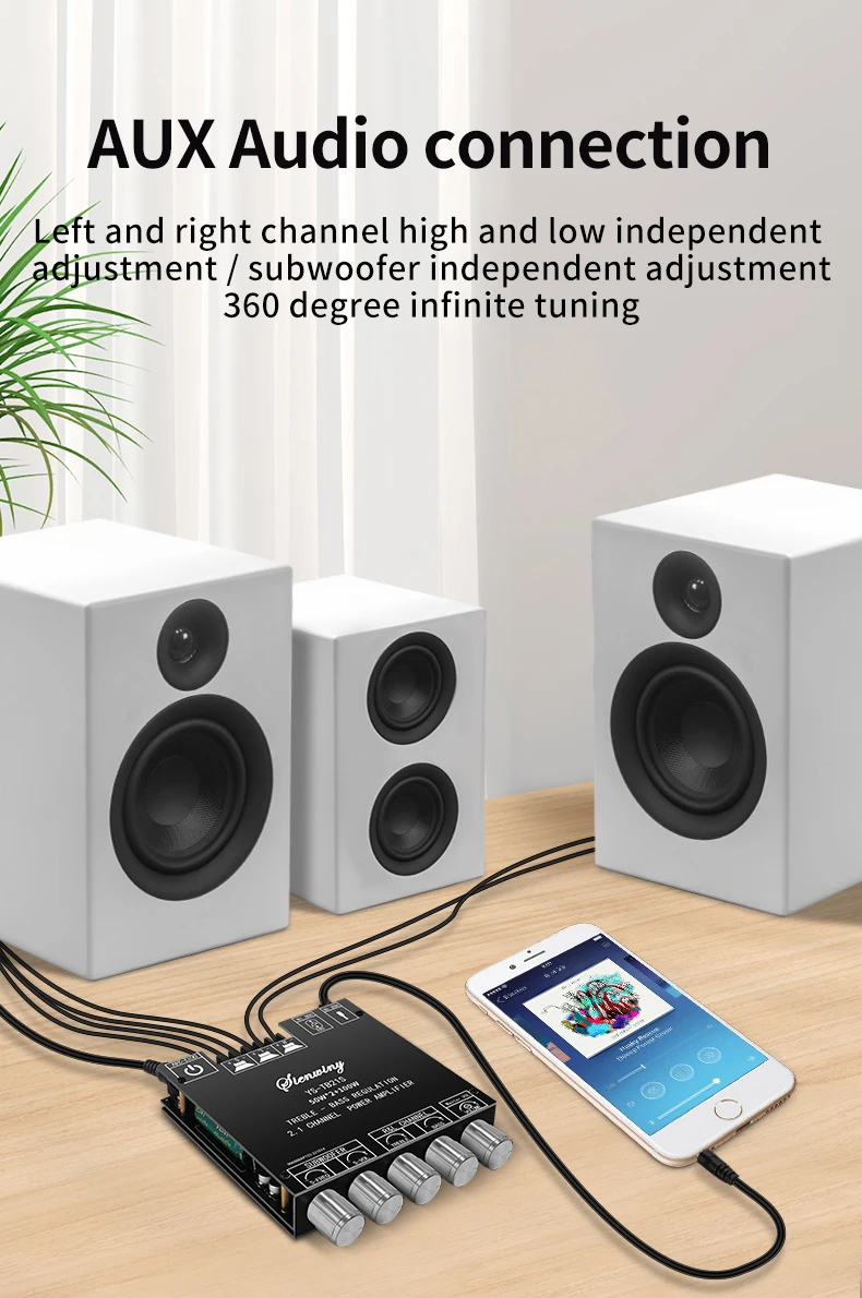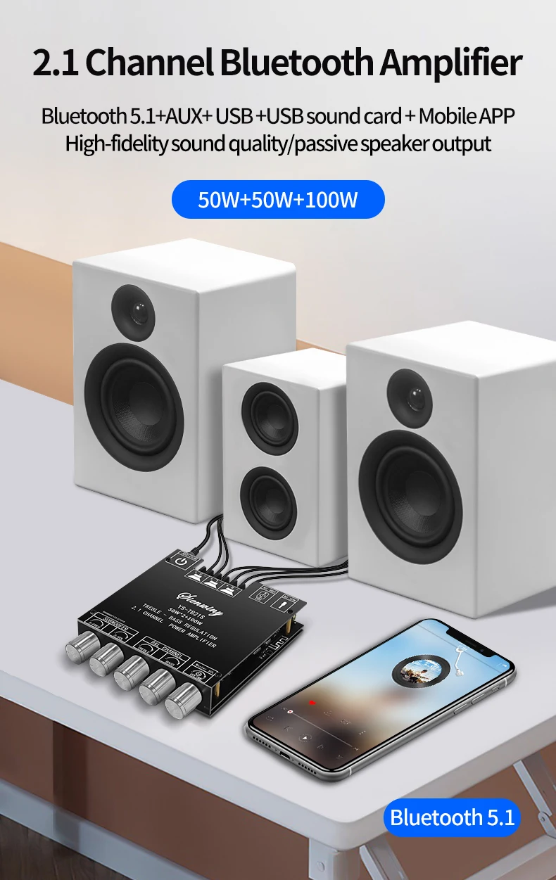 Adapted speakers: Left and right channels 20-50W, 4-8Ω subwoofer 20-100W, 3-8Ω