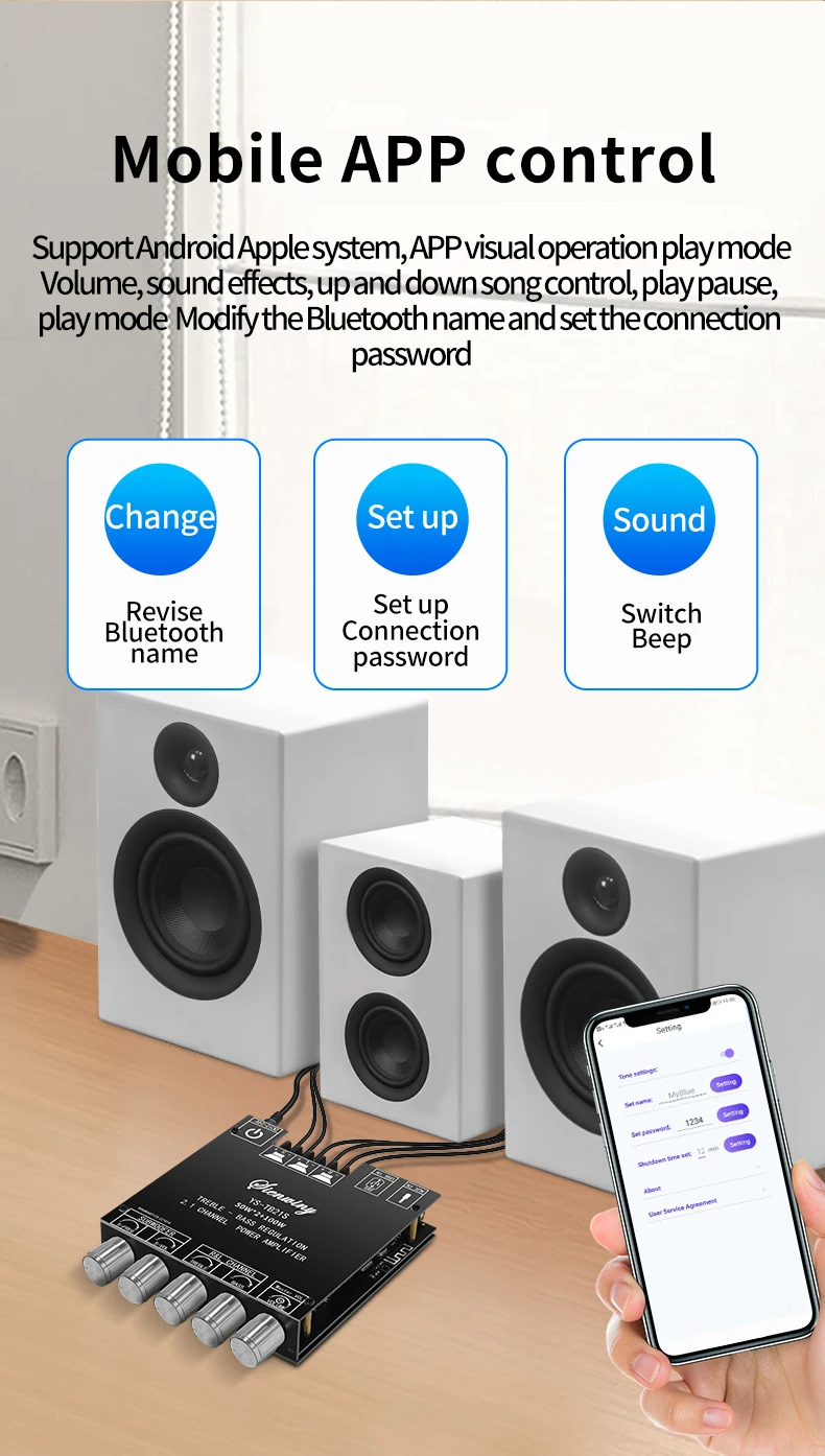 product name: 2.1 channel BT audio power amplifier board module