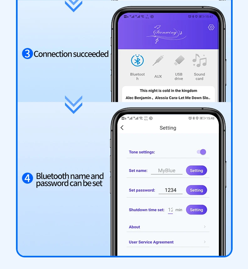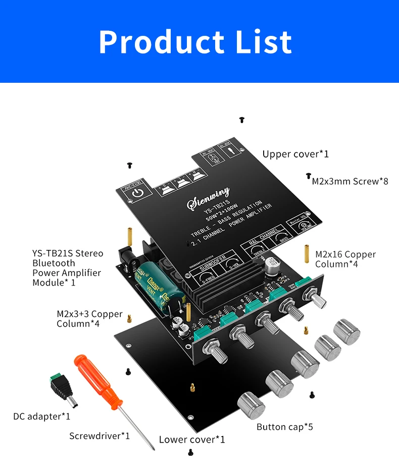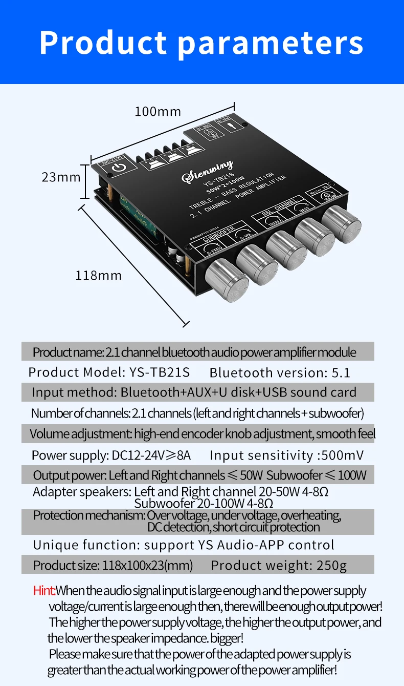 Please ensure that the power of the adapted power supply is greater than the actual working power of the power amplifier!