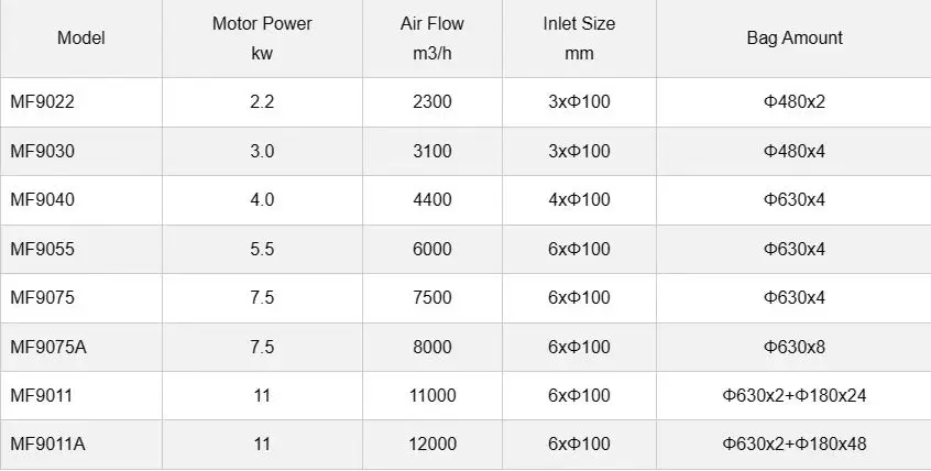 The dust collectors we have are as follows.