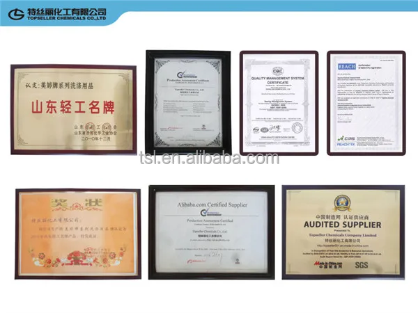 Topseller Chemicals Company Limited, a subsidiary company of Shandong Tralon Group, was founded in 1990. Located in Longkou, Yantai City, Shandong Province--180 kilometers away from Qingdao port, 100 kilometers away from Yantai port, 6 kilometers away from Longkou port, it enjoys convenient transportation. Our company has about 600 employees. The factory area covers 100,000 square meters and over 20,000 square meters of warehouse space. We own two sets of high tower spray dried production lines and a set of concentrated detergent powder equipment , total output of 200,000 tons of high, medium and low-quality synthetic washing powder per year and we are building a line of liquid detergent presently which output is 200,000 tons too. Topseller is the biggest synthetic detergent specialized manufacturer in north China.