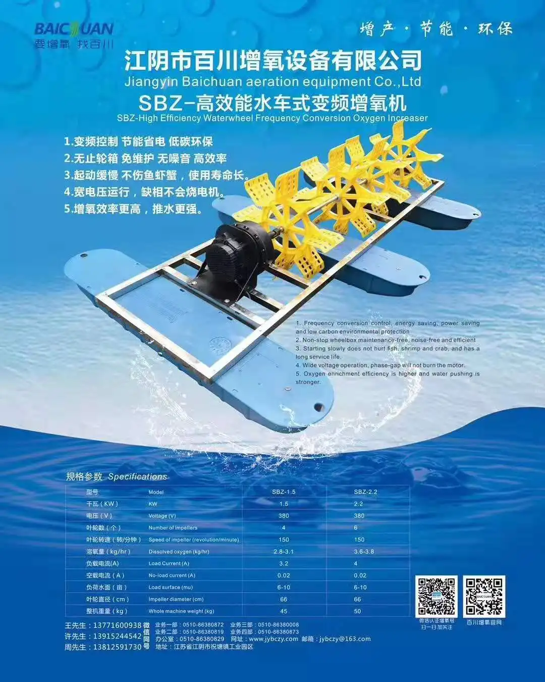 Shrimp, fish and other aqua animals can grow up quickly and healthly and can be avoided to die because of lack of enough disssolved oxygen in the water, meantime, can be farmed in high density with steady output.