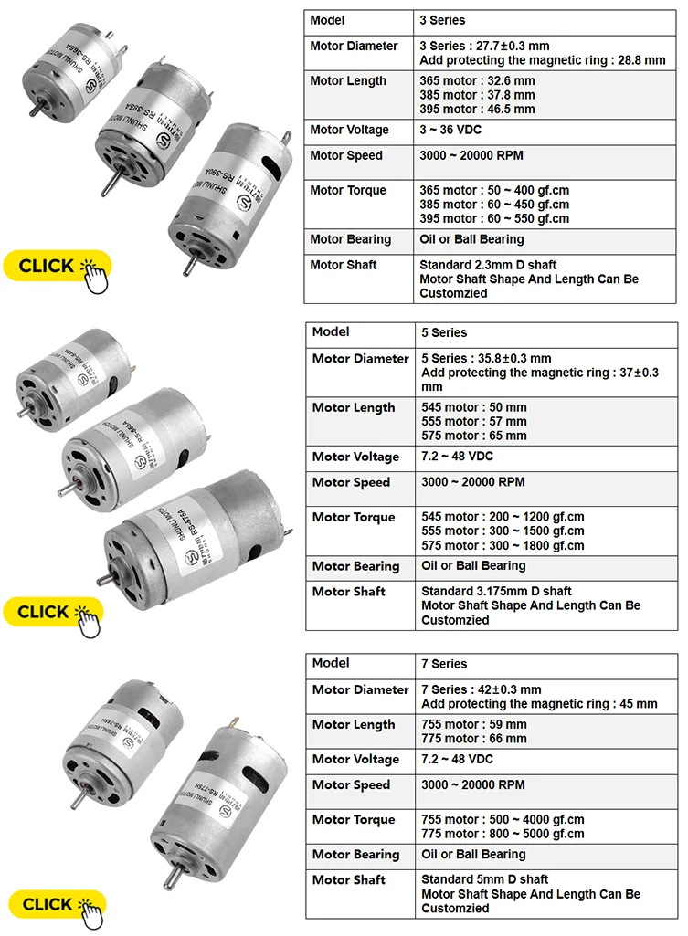 RPM | A | RPM | A | mN.m / gf.cm | W | A | mN.m / gf.cm | ||||