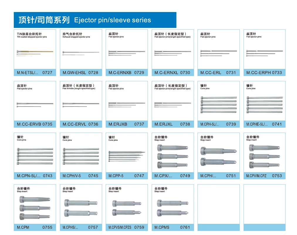 Mold accessories are widely used in various plastic molds, stamping molds, automotive, electrical and aviation manufacturing fields. Mold accessories with its high precision requirements, high quality requirements stand in the first hardware accessories. The materials of mold accessories are usually tungsten steel, high-speed steel, bearing steel, stainless steel, brass, metal alloys, spring steel, carbonized steel and so on. It can be said that the products that can be seen everywhere in your daily life are inseparable from the production of mold components