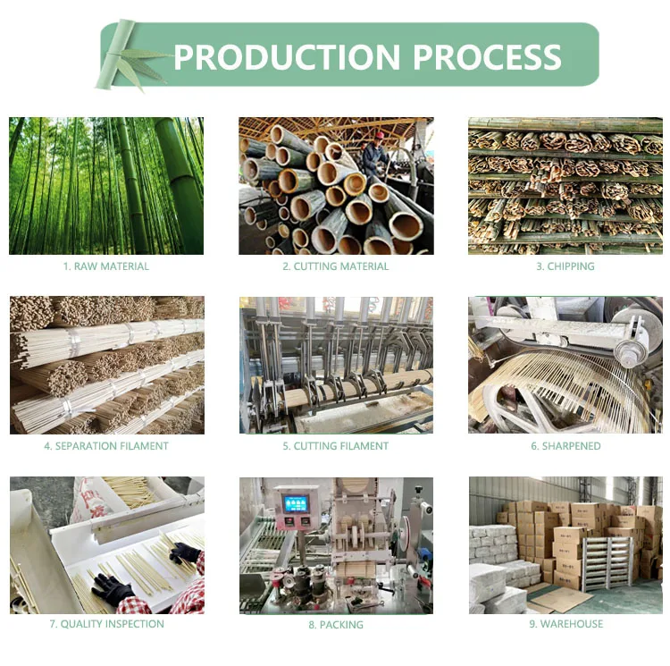 We have our own factory with more than 15,000 square meters located in Longyan city, Fujian, specializing in producing disposable chopsticks, bamboo sticks, and other related products. | ||||||||