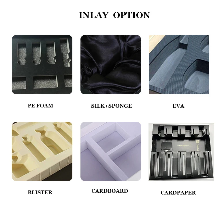 Accessory | EVA, Ribbon, PET Tray, PVC blister, Sponge, Velvet, Magnet , Cotton Handle | |||||||
