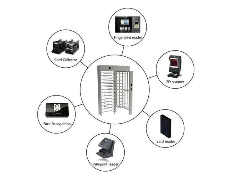 The turnstile can also work with push button, fingerprint and face recognition access control system.