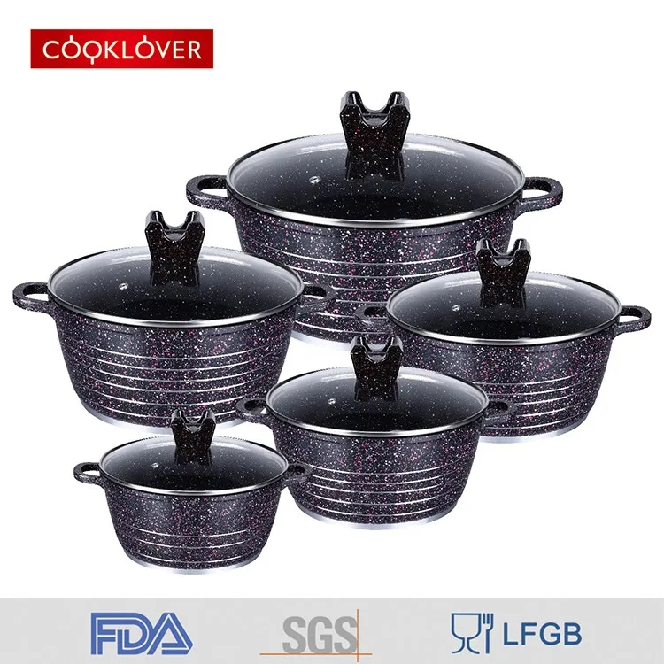 cooklover 10pcs die casting non stick ceramic coating aluminum  pot cookware set