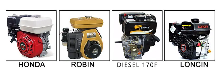 Engine :Gasoline Engine (Brand Honda ,Robin , Loncin , Loncin etc)/ diesel Engine (BRAND Shark 170F ) | ||||||||