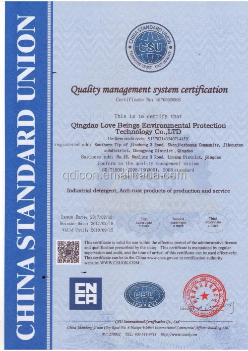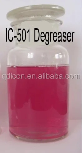 IC-501 metal cleaning agent is light red liquid, which is oil removal cleaning agent for ferrous metal and stainless steel products. This product is made by bio-degradation surfactant , additives and corrosion inhibitor. It is used for cleaning kinds of greasy, with the advantage of using under normal temperature, simple operation, saving energy, long service life.