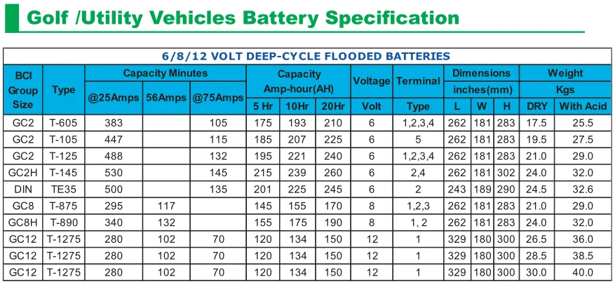 6/8V VOLT DEEP-CYCLE FLOODED BATTERIES | ||||||||||||||||||